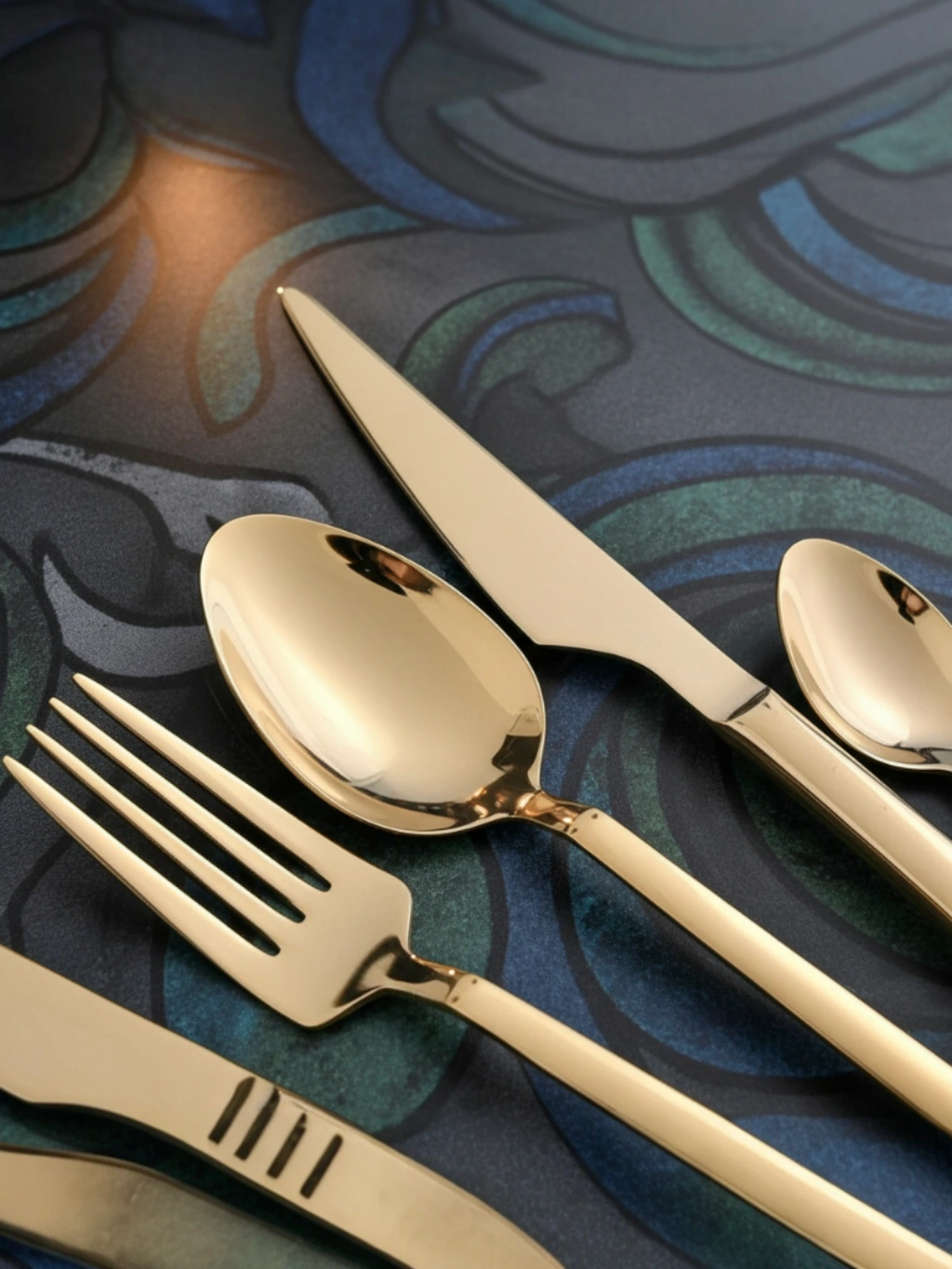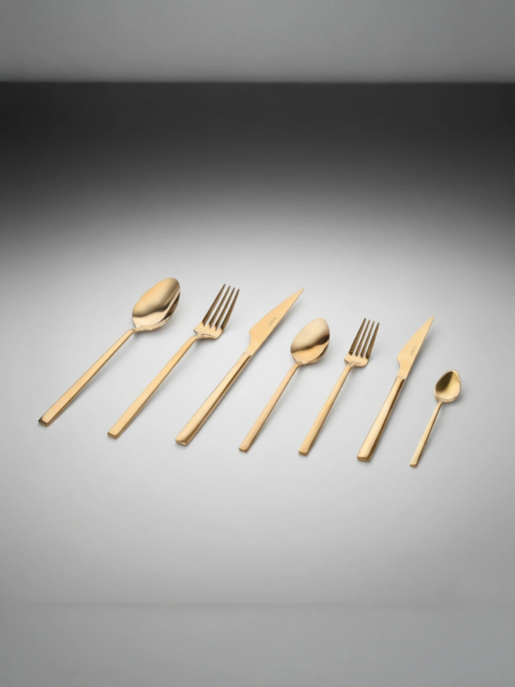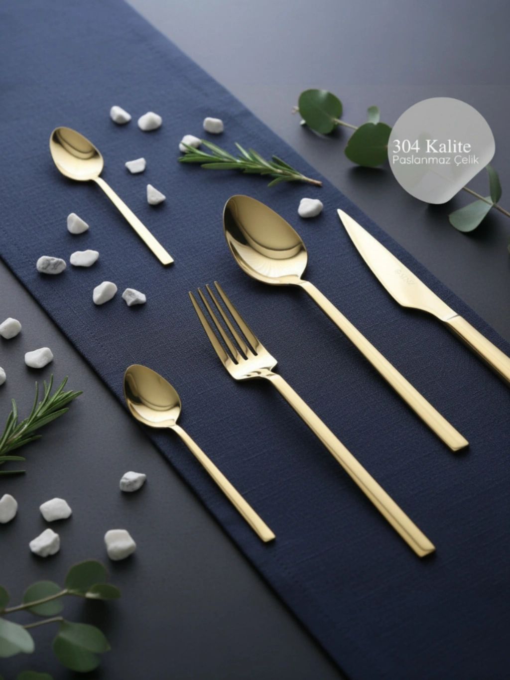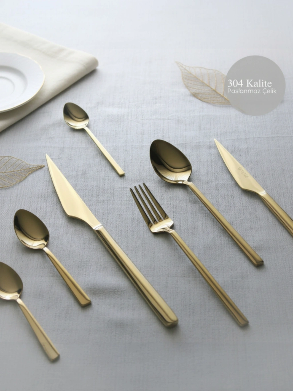 MyBru Paslanmaz Çelik Gold 84 Parça Çatal Kaşık Bıçak Seti, sofralarınıza şıklık ve zarafet katmaya hazır! Bu sette; 12 adet yemek kaşığı, 12 adet yemek çatalı, 12 adet yemek bıçağı, 12 adet tatlı çatalı, 12 adet tatlı bıçağı,12 adet tatlı kaşığı ve 12 adet çay kaşığı bulunmaktadır. Paslanmaz çelik malzemesi sayesinde uzun ömürlü kullanım imkanı sunarken, altın rengi detaylarıyla göz alıcı bir görünüm sergiler. Şık tasarımıyla özel davetlerinizde ve günlük sofralarınızda en şık sunumları gerçekleştirebilirsiniz. MyBru markasının kalitesi ile birleşen bu 84 parça set, mutfağınızın vazgeçilmezi olmaya aday!