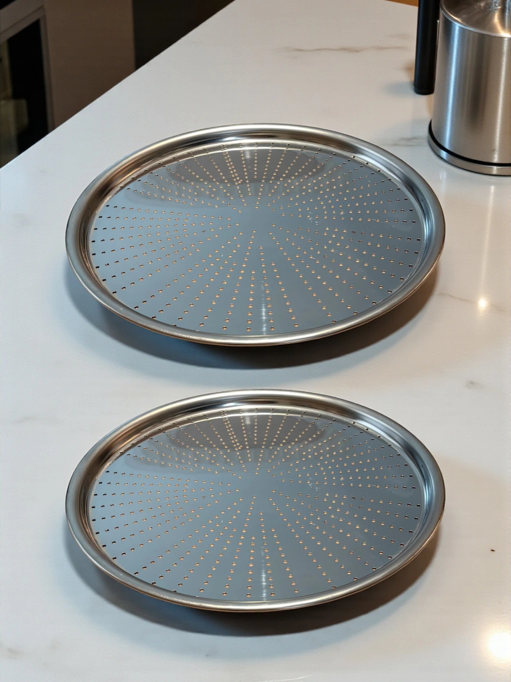 MyBru marka paslanmaz çelik pizza ve lahmacun tepsisi, mutfakta pratik kullanım sunar.