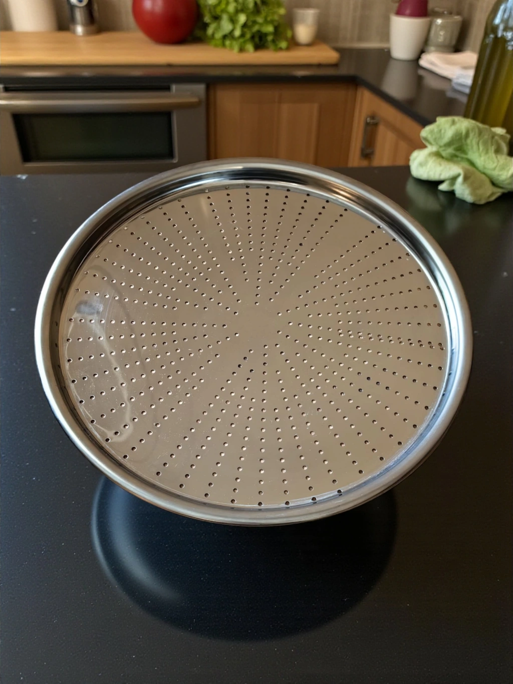 MyBru marka paslanmaz çelik pizza ve lahmacun tepsisi, mutfakta pratik kullanım sunar.