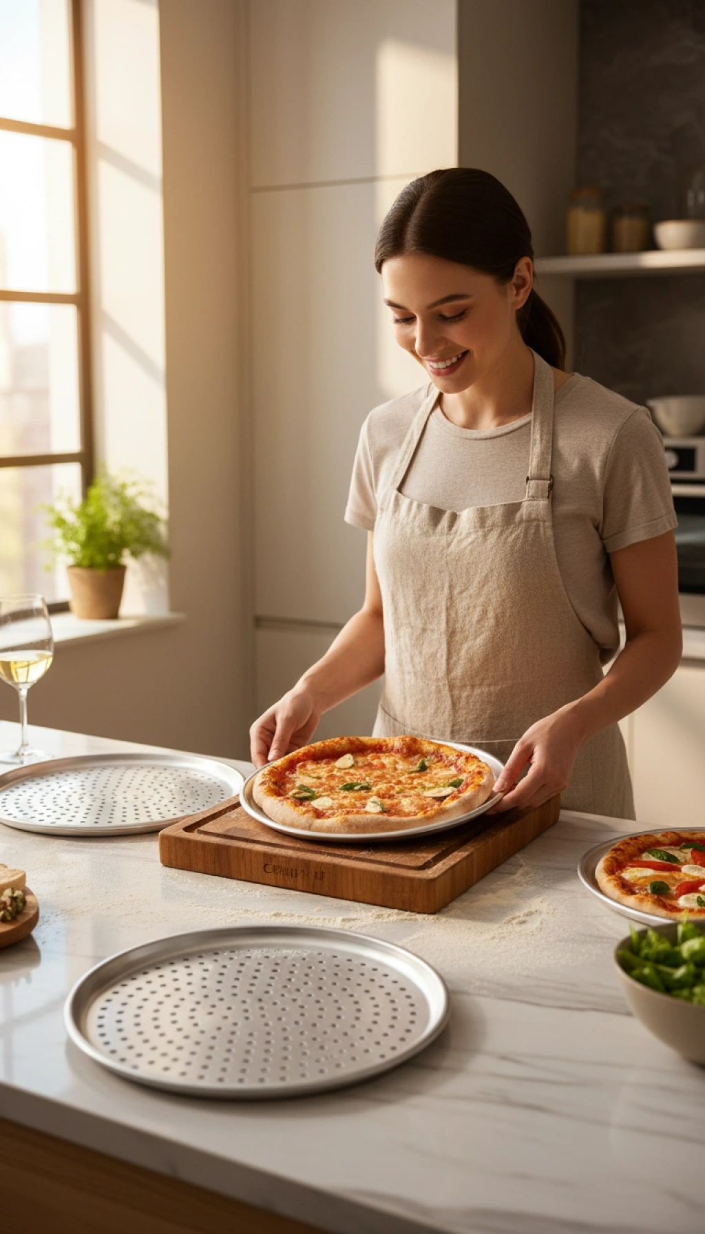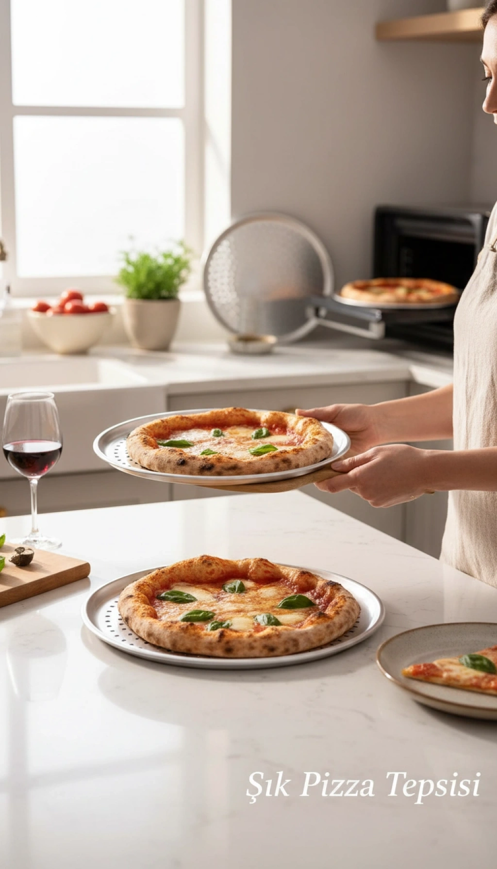 MyBru marka paslanmaz çelik pizza ve lahmacun tepsisi, mutfakta pratik kullanım sunar.