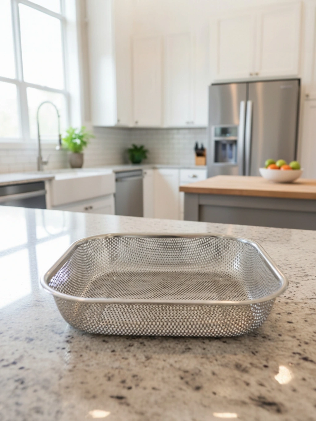Paslanmaz Çelik Kare Çok Amaçlı Makarna Un Meyve Sebze Süzgeci 27 Cm.