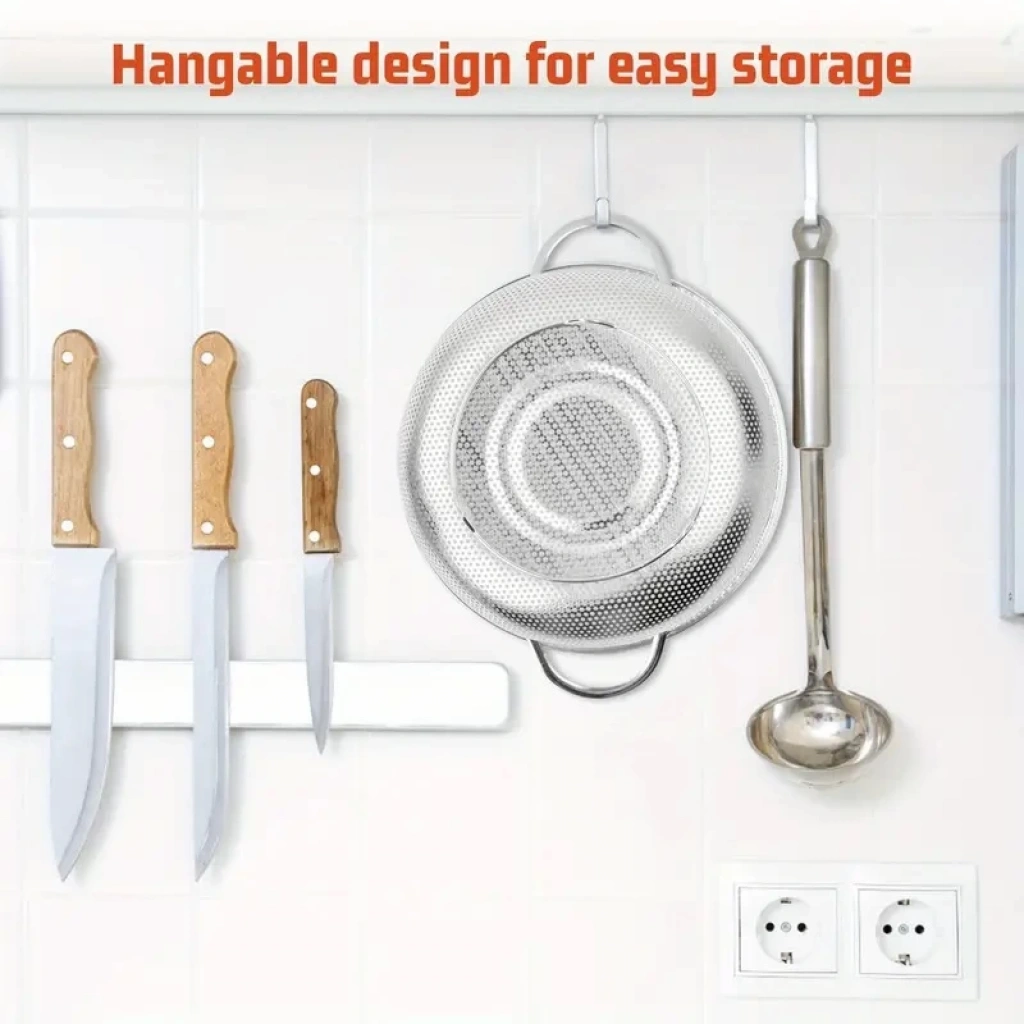 MyBru Paslanmaz Çelik Kulplu Tel Çok Amaçlı Makarna Un Meyve Sebze Süzgeci, mutfakta pratik kullanım imkanı sunar.
